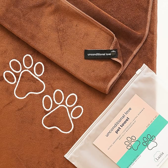 Unconditional Love | Premium Pet Drying Towel | Ultra Absorbent and Soft Microfiber Towel for Dogs and Cats (Brown)
