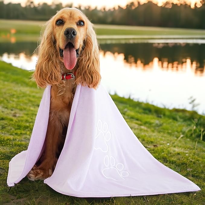 - FUNCTIONAL & STYLISH DESIGN: Lightweight in design, our microfiber pet drying towels feature stylishly embroidered paw logos to compliment the theme. An added hand loop with a button and the included practical slider zip bag also offer a convenient, travel-friendly way to transport the towel when on the go.