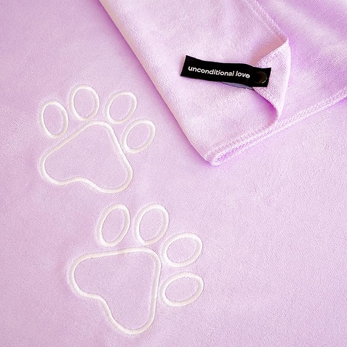 Unconditional Love | Premium Pet Drying Towel | Ultra Absorbent and Soft Microfiber Towel for Dogs and Cats (Lilac)