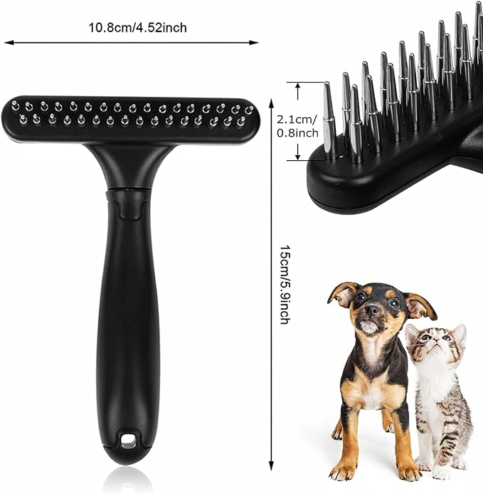 - 【Double-sided Hooked Comb Teeth】- Universal shedding tool for dogs and cats has 9 hooked comb teeth on one side for stubborn mats and tangles. The other side has 17 dense comb teeth for thinning and shedding. Achieve faster, more professional shedding and grooming results.