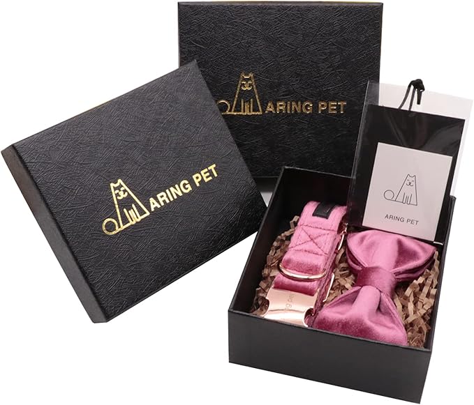 ARING PET Bowtie Dog Collar-Velvet Dog Collars with Removable Bowtie, Cute & Comfortable Dog Collar.
