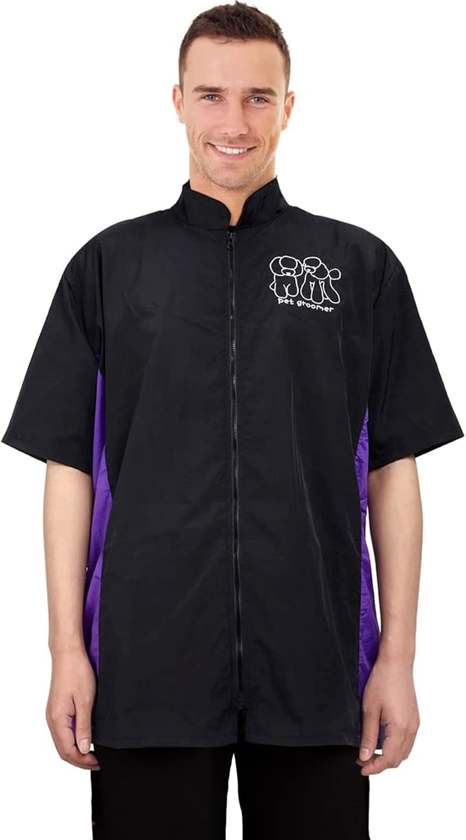 - 💜💜【Anti Static & Soft & Lightweight】-- Even when working, your clothes need to be kept neat and clean. This lightweight grooming jacket is made from polyester fibre, which is totally hair repellent and splash proof, keep you and your clothes safe and protected from splash water and fur.