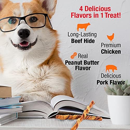 - TRIPLE FLAVOR: Good ‘n’ Fun Triple Flavor Twists are made with long-lasting beef hide, wrapped in chicken and flavored with real peanut butter and delicious pork for a delicious taste your dog can’t resist.