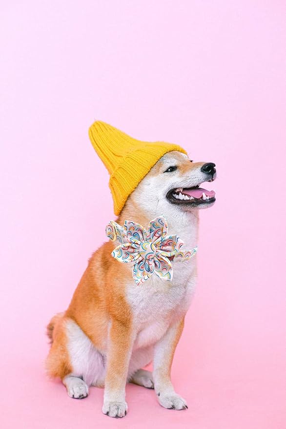 Uniqe Style Paws Flower Dog Collar, Adjustable Dog Collar with Flower, Durable Rainbow Floral Pattern Pet Collar for Medium Dogs