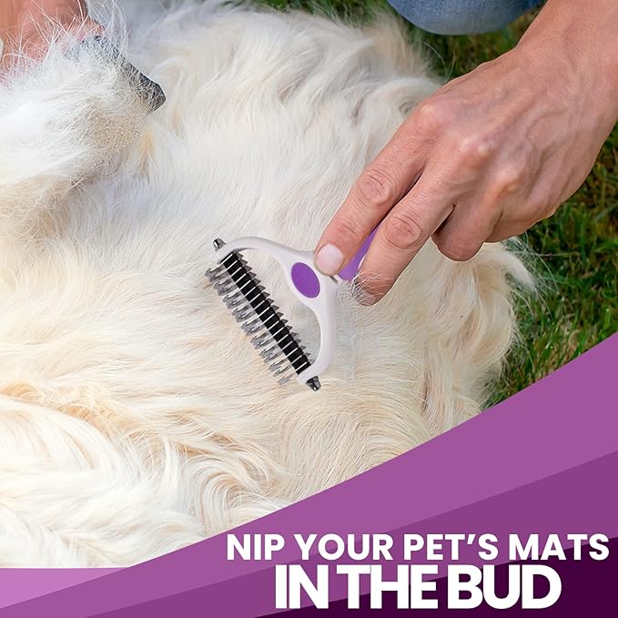 POODLIE Pet Grooming Dematter and Shedding Comb Tool, Twin-Blade Undercoat Rake for Cats and Dogs with Medium and Long Hair, Gentle on Pets with Sensitive Skin, Comfortable to Use Ergonomic Handles
