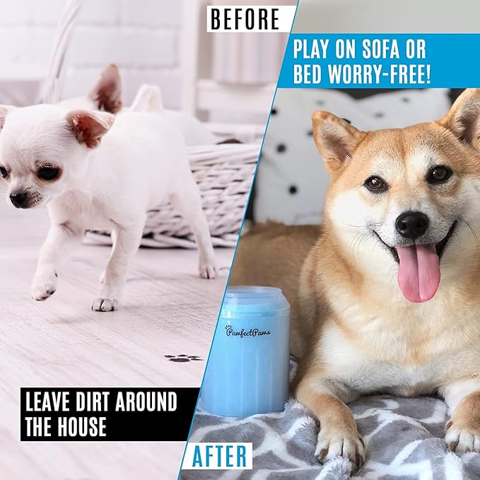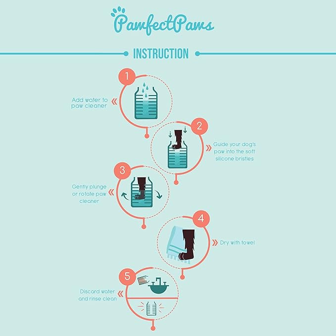 - [Easy to Use] – Simply add water to paw cleaner, guide your dog’s paw into the soft silicone bristles, gently plunge/rotate the paw cleaner, dry with towel, and discard dirty water