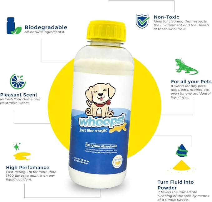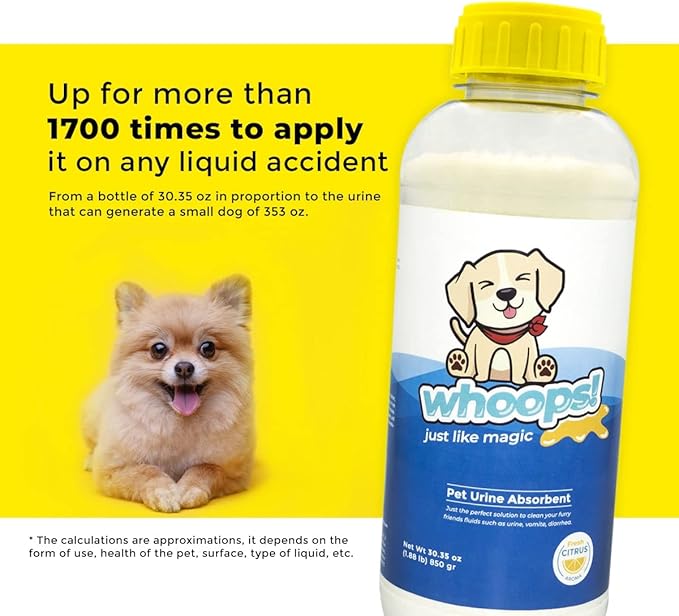 Whoops! Pet Accident Cleanup Powder - Non-Toxic, Citrus Fragrance, Absorbs & Deodorizes Urine, Vomit, Diarrhea - 2 Pack (29.98 oz Each)