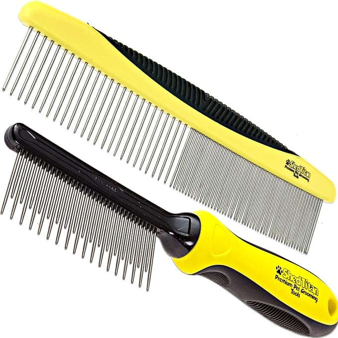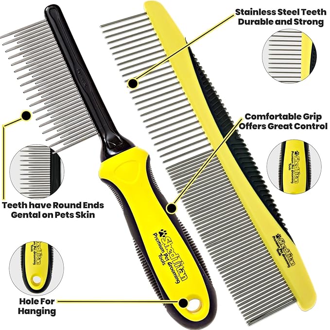 Metal Dog Comb for Matted Hair & Detangler Combs Set - Remove Tangles & Matted Fur - Easy Safe Cat & Dog Combs for Grooming Doodles