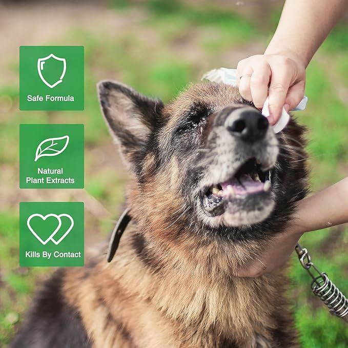 - LET YOUR FURRY FRIEND SAFER IN OUTDOOR: Our wipes are a good choice for pets who like the outdoors. When your dog plays outside, pets are easily infected with outdoor pests. You can wipe your pet's body with our wet wipes first. This will prevent pests from staying on your furry friend. If the pest is already on your pet, use our wet wipes to wipe them off
