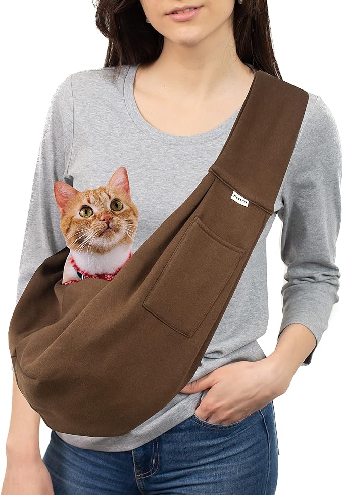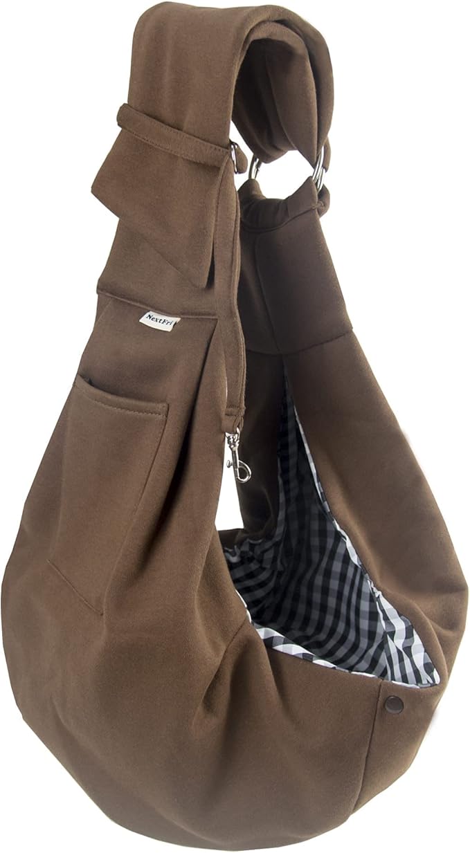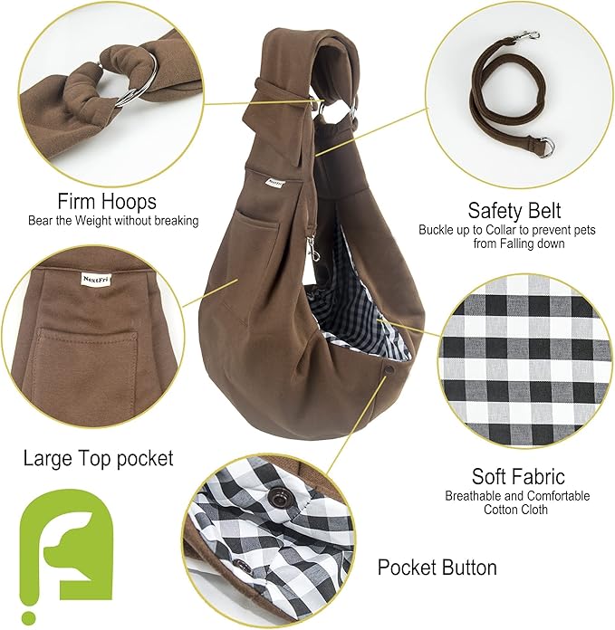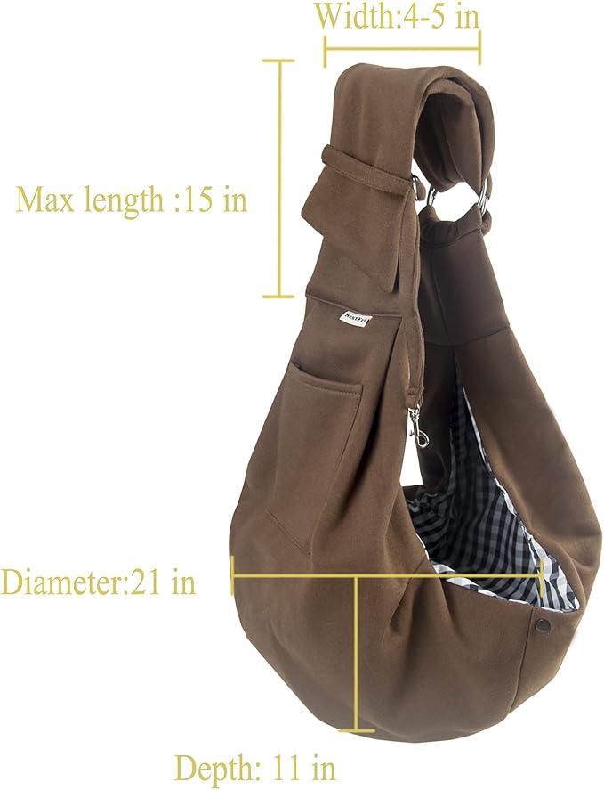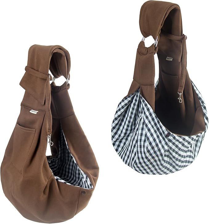 Pet Sling Carrier Adjustable Shoulder Strap Puppy Tote Hands Free Reversible Pet Backpack for Outdoor Travel Classci Brown