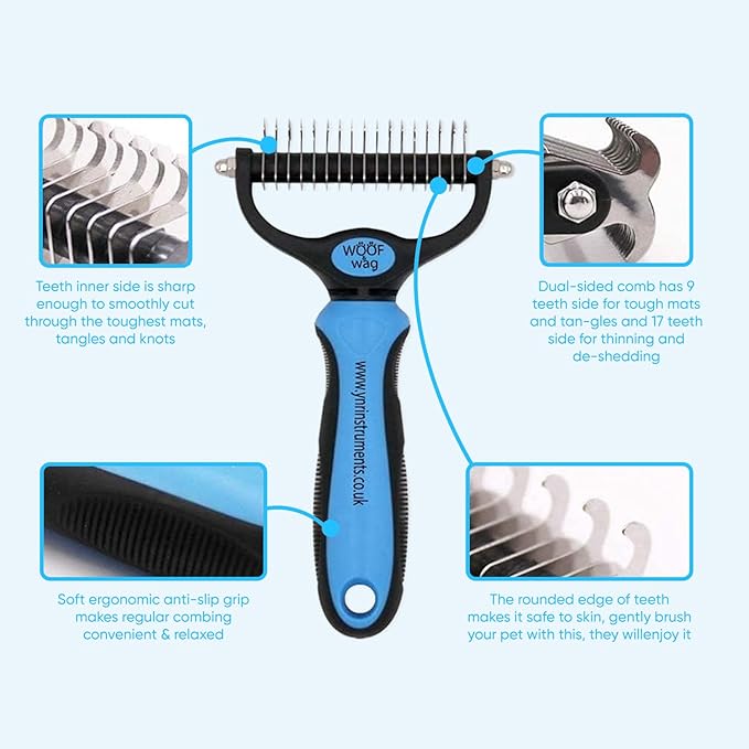 - Safety Skin-Friendly Design: YNR Woof & Wag stainless steel pet hair remover features sharp yet fine rounded teeth that won't scratch your pet's skin. The sharp inner teeth easily cut through tough mats, tangles, and knots without pulling. Perfect for safe and effective grooming.