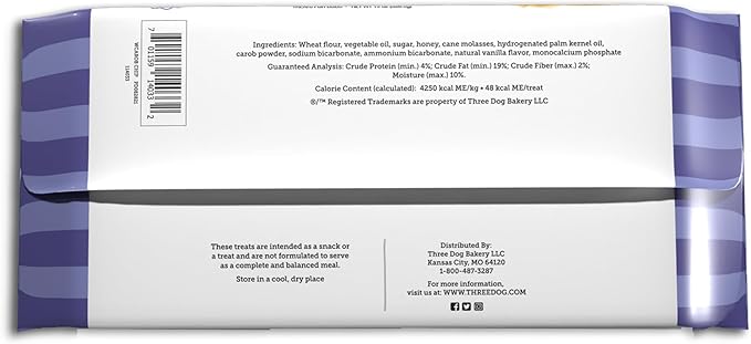 Three Dog Bakery Cookies with Carob Flavored Chips, Premium Treats for Dogs, 13 Ounce Package, 6-Pack