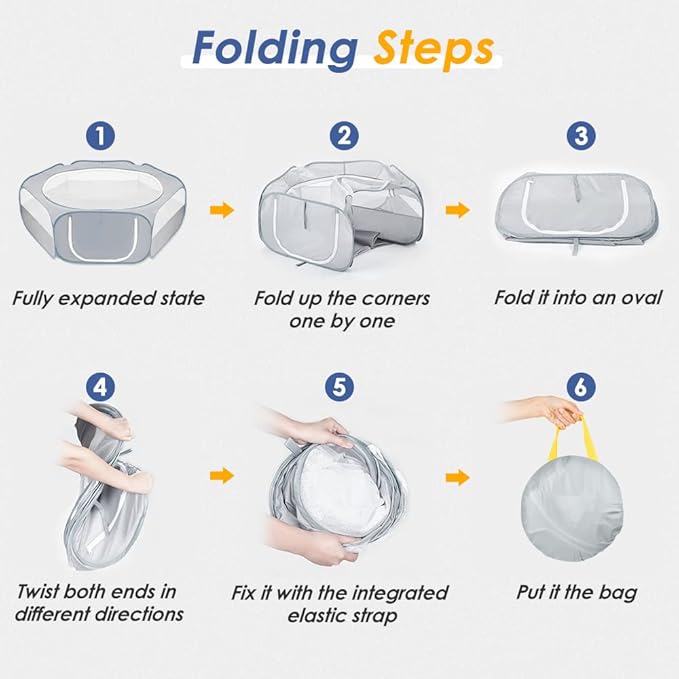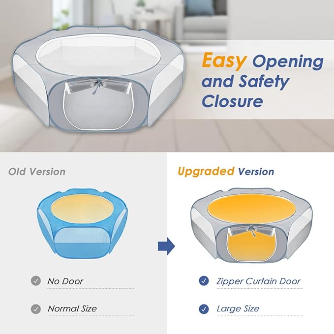 - Upgraded Mesh & Fabric --- SlowTon pet play pen adopted reinforced hexagonal wire mesh that is woven a solid structure to ensure durability. Half cloth on the lower part help to avoid pets’ prisonbreak by chewing through. Half mesh on upper part provides fresh air and keeps your animals under observation.