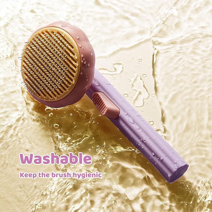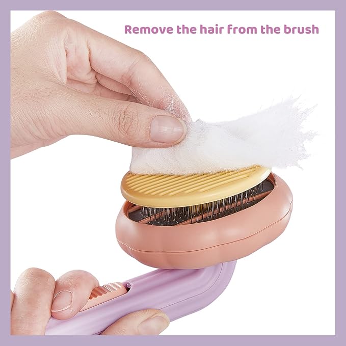 - 【Self-cleaning Button】 Cat brush with the self-cleaning button to make shedding easier and more efficient. Just for a gentle click, the hair will be pushed out. Not only keep your pet cute and clean but also provide a hygienic home environment for you.
