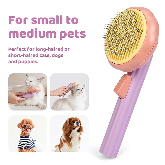 - 【For small to medium pets】 Pet self-cleaning slicker brush is great for dogs and cats of all sizes and hair types! Perfect for long-haired or short-haired cats, dogs, and puppies.