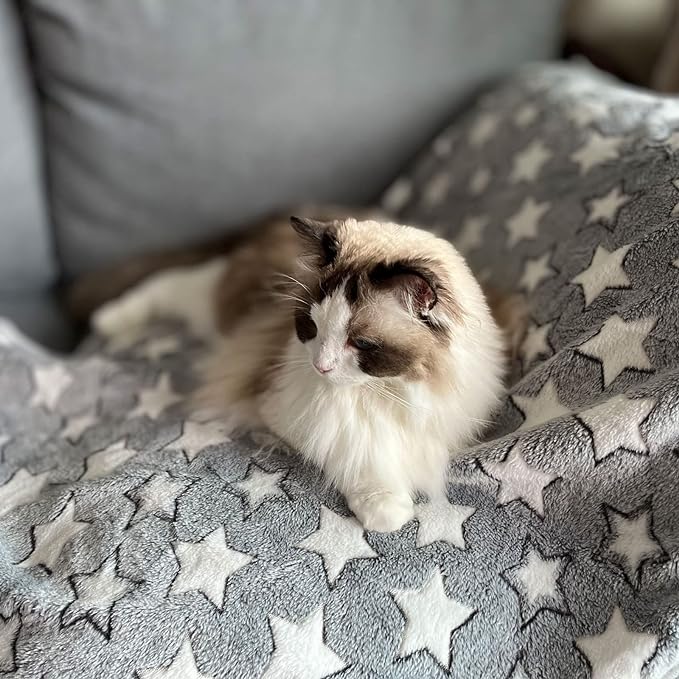 1 Pack 3 Puppy Blankets Cat Dog Blankets Super Soft Warm Sleep Mat Grey Star Cute Print Blanket Fluffy Fleece Pet Blanket Flannel Throw for Small Dogs Puppy Dogs Cats Small(23"x15")