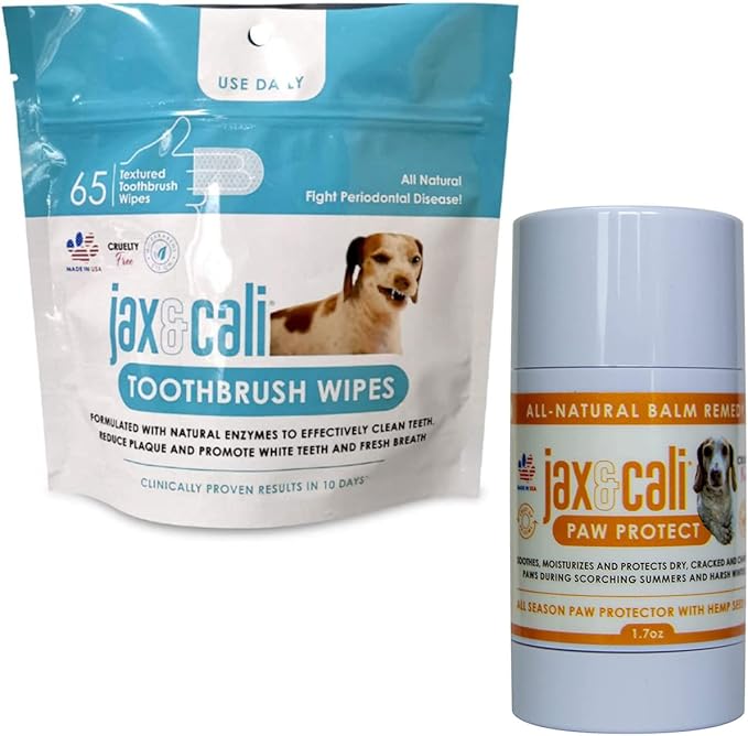 JAX & CALI All Natural Pet Toothbrush Wipes & Paw Protect, All-Natural Paw Protecting Balm for Dogs and Cats