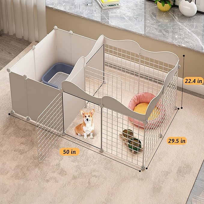 - 【Applicable Size】: Small pet playpen measures approximately 50''L x 29.5''W x 22.4''H when assembled, only suitable for rabbits, chinchillas, guinea pigs, hedgehogs, kittens, puppies or other small animals.