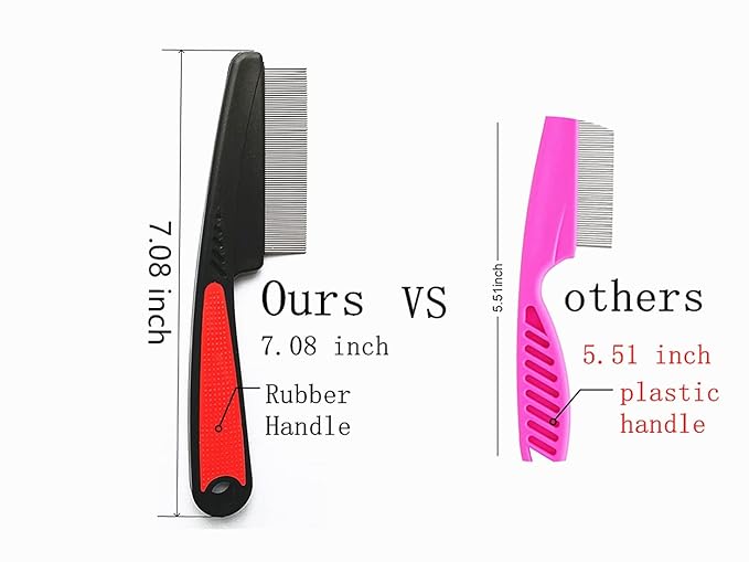 - Flea Comb:Our close-tooth Flea Comb length 7.1 inches longer than others,fine rounded pin teeth can move freely without pulling or scratching and causes.Quickly cover your pet’s body And spot nasties hiding on your pet.
