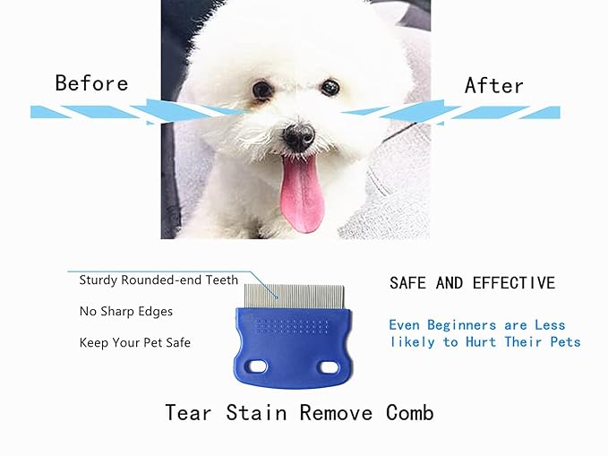 - Safe Tear Stain Remover Comb:Round-ended pin teeth.You can remove crust around the eyes without any fears.Help your pet look better and feel healthier.
