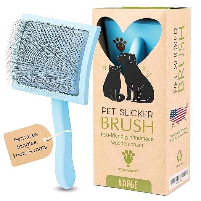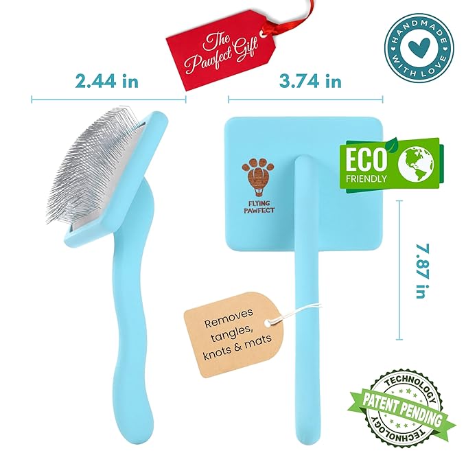 Pet Slicker Brush With Soft Massage Grooming Stainless Steel Pins - For Dematting, Shedding Fur, and Undercoat - Ideal Gift for Professional Pet Groomers - Long Slicker Brush - Flying Pawfect