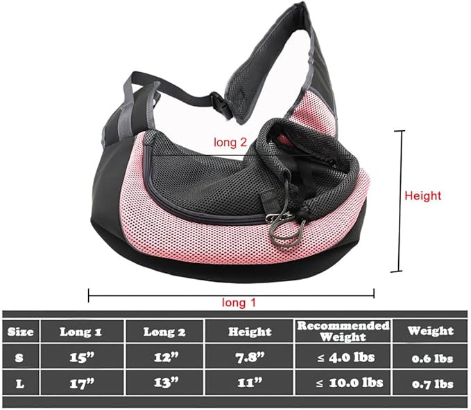 Pet Dog Sling Carrier, Breathable Mesh Portable Travel Safe Pet Sling Shoulder Bag Carrier with Adjustable Non-Slip Shoulder Strap for Small Dogs Cats Puppy (Small, Pink)