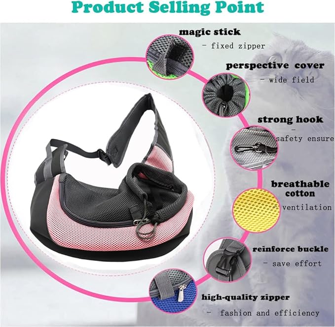 - 【Safe and Convenient】A safety buckle on the inside of the pet sling carrier (it can be connected to a collar) to prevent pets from jumping out. Magic sticker prevents the zipper from slipping and effectively increases safety. The firm buckle design on the shoulder strap is convenient to use and prevents the bag from being disconnected during use.