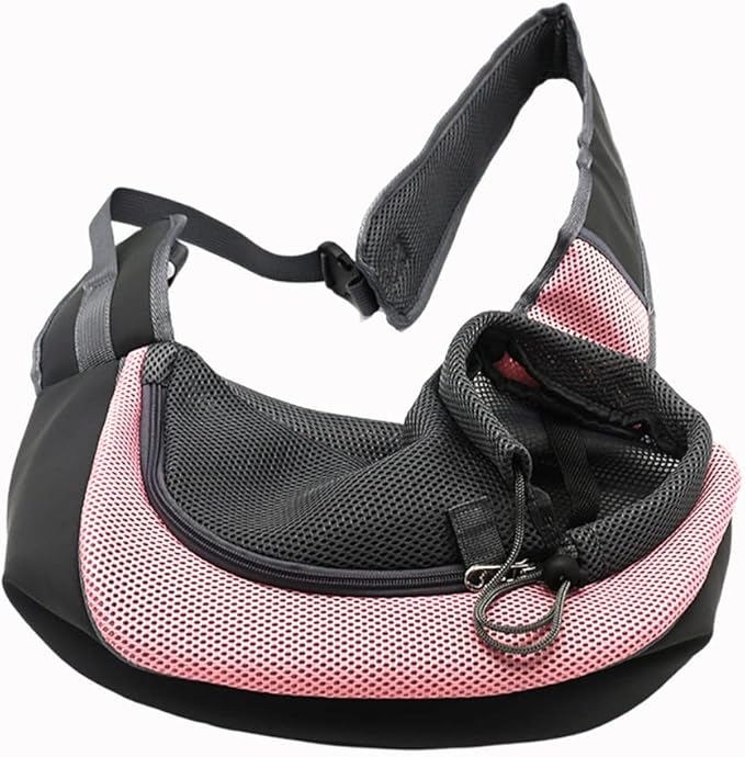 Pet Dog Sling Carrier, Breathable Mesh Portable Travel Safe Pet Sling Shoulder Bag Carrier with Adjustable Non-Slip Shoulder Strap for Small Dogs Cats Puppy (Large, Pink)