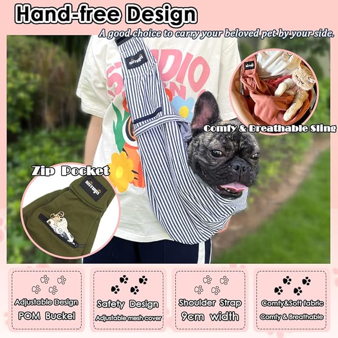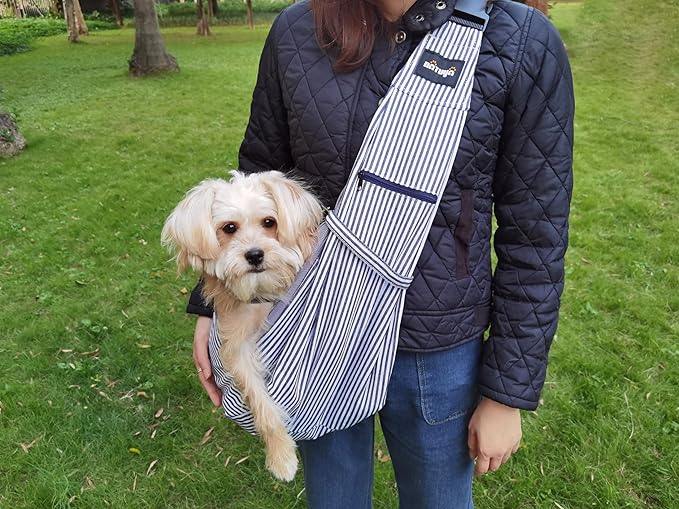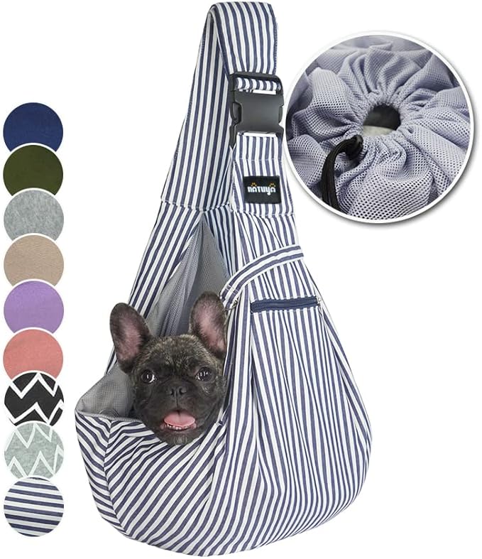 NATUYA Pet Dog Sling Carrier - Dog Sling with Net Bag for Carrier Dogs Cats-Hands Free Pet Bag-Buckle net Pocket pet Bag (Blue Strips)