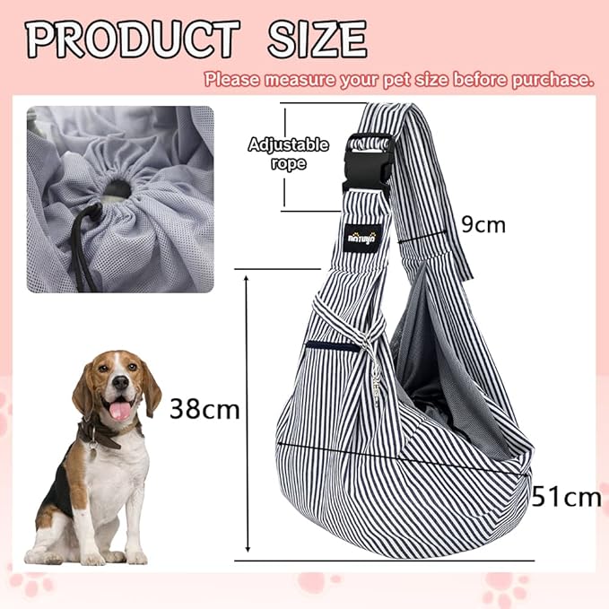 - [Mesh Bag Mouth] The dog bag with the mesh bag mouth is breathable and durable, and the drawstring design prevents pets from jumping out or falling down, while protecting your pet's neck.Sling carrier also has an adjustable safety hook which links to your pet’s collar preventing your pet from falling out accidentally.