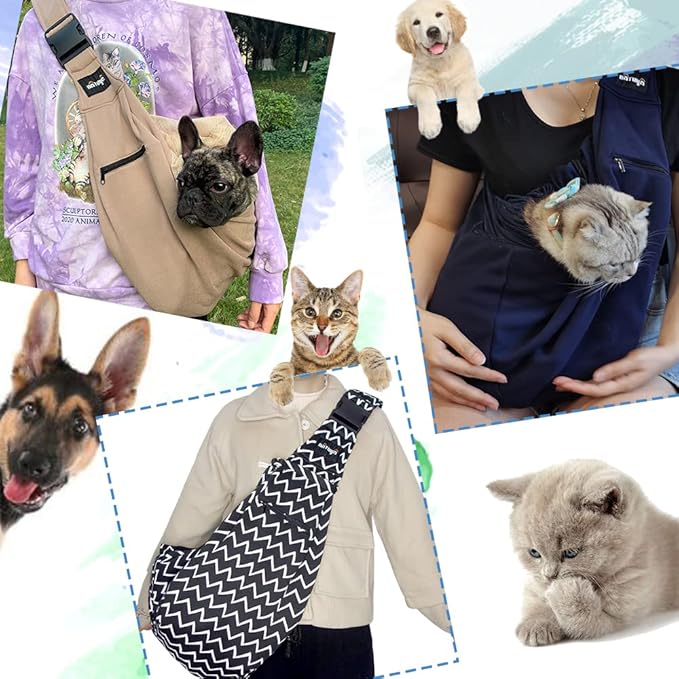 - [Mesh Bag Mouth] The dog bag with the mesh bag mouth is breathable and durable, and the drawstring design prevents pets from jumping out or falling down, while protecting your pet's neck.Sling carrier also has an adjustable safety hook which links to your pet’s collar preventing your pet from falling out accidentally.