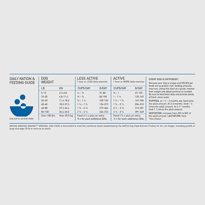 - One (1) 4lb bag of ORIJEN AMAZING GRAINS Original Dry Dog Food