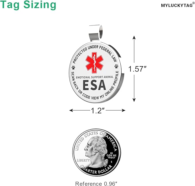 MYLUCKYTAG QR Code ESA Emotional Support Dog ID Tag - Pet Online Profile - Scan QR Receive Instant Pet Location Alert Email