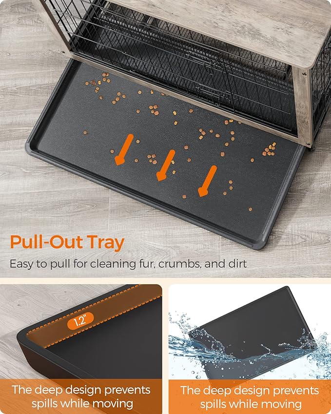 - [Sturdy and Chew-Resistant] Made with durable particleboard and steel, this piece of dog furniture is sturdier and more chew-resistant than wooden dog crates, offering a lasting, stable, and safe retreat for your fur friend