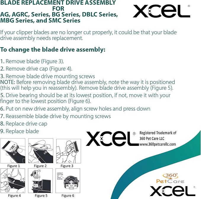 - ✅ XCEL BLADE DRIVES are compatible with these clipper models: AG, AGC, AGR, AGR+, AGRC, AGCL, BG, BGC, BGR, BGR+, BGRC, BGCL, MGB, and SMC 5-Speed clippers.