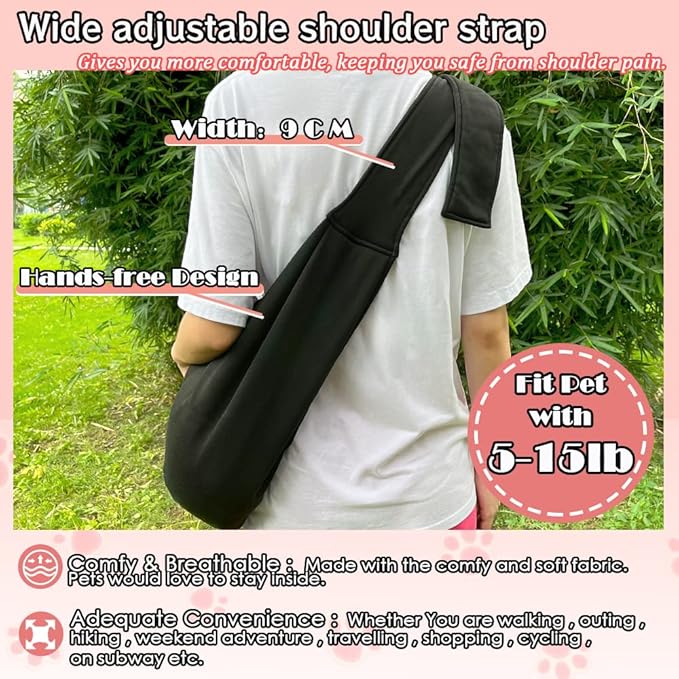NATUYA Pet Dog Sling Carrier - Dog Sling with Net Bag for Carrier Dogs Cats-Hands Free Pet Bag-Buckle net Pocket pet Bag (Black)