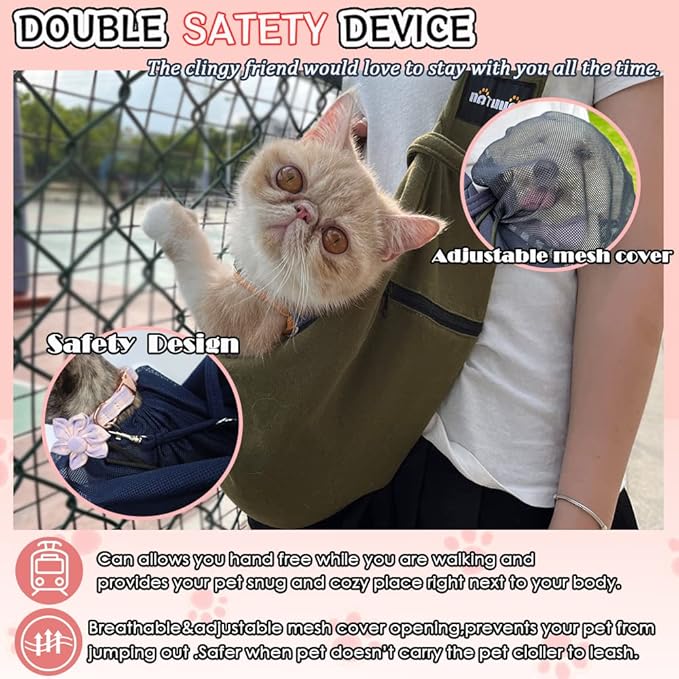 - [Mesh Bag Mouth] The dog bag with the mesh bag mouth is breathable and durable, and the drawstring design prevents pets from jumping out or falling down, while protecting your pet's neck.Sling carrier also has an adjustable safety hook which links to your pet’s collar preventing your pet from falling out accidentally.