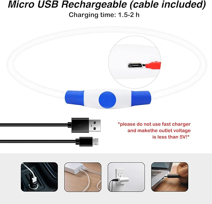 - Safety LED Dog Collar: The light dog collar will help you find your dog quickly in the dark. (If the bulb is damaged, the collar will turn into other colors) Please Do Not Use Fast Charging