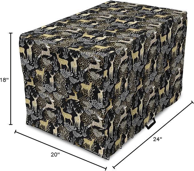 Ambesonne Christmas Dog Crate Cover, Nature Woodland and Deer Silhouettes with Oriental Ornaments Design, Easy to Use Pet Kennel Cover for Cats & Medium Dogs, 24 Inch, Yellow White Black