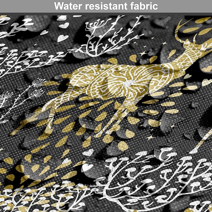 Ambesonne Christmas Dog Crate Cover, Nature Woodland and Deer Silhouettes with Oriental Ornaments Design, Easy to Use Pet Kennel Cover for Small Dogs Puppies Kittens, 18 Inch, Yellow White Black