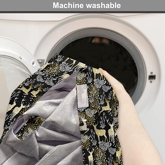 Ambesonne Christmas Dog Crate Cover, Nature Woodland and Deer Silhouettes with Oriental Ornaments Design, Easy to Use Pet Kennel Cover for Small Dogs Puppies Kittens, 18 Inch, Yellow White Black