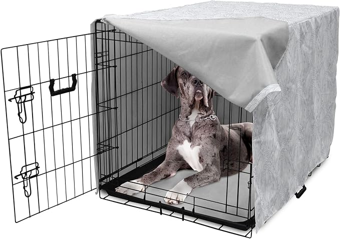 Ambesonne Grey and White Dog Crate Cover, Doodle Style Botanical Leaves Pattern Shabby Ornamental, Easy to Use Pet Kennel Cover for Medium Large Dogs, 48 Inch, Pale Blue Grey and White