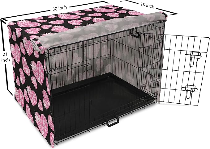 Ambesonne Diamonds Dog Crate Cover, Romantic Pink Heart Stones on Black Background Valentines Day Theme, Easy to Use Pet Kennel Cover for Cats & Medium Dogs, 30 Inch, Pink Black