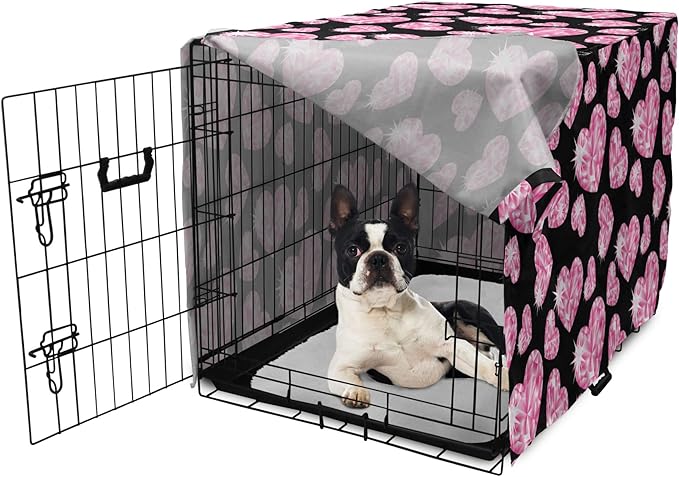 Ambesonne Diamonds Dog Crate Cover, Romantic Pink Heart Stones on Black Background Valentines Day Theme, Easy to Use Pet Kennel Cover for Small Dogs Puppies Kittens, 22 Inch, Pink Black