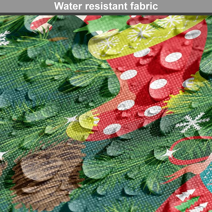 Ambesonne Christmas Dog Crate Cover, Xmas Accessories Stockings Candies Horse Teddy Bear on Pine, Easy to Use Pet Kennel Cover for Medium Large Dogs, 42 Inch, Green Brown