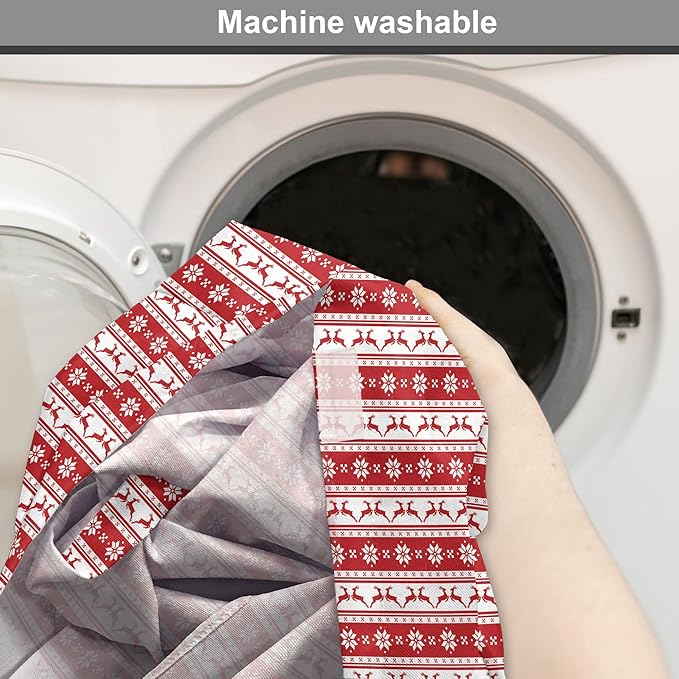 Ambesonne Christmas Dog Crate Cover, Xmas Winter Themed Deers Snowflakes in Nordic Pattern Borders and Lines Art, Easy to Use Pet Kennel Cover for Cats & Medium Dogs, 24 Inch, Ruby White