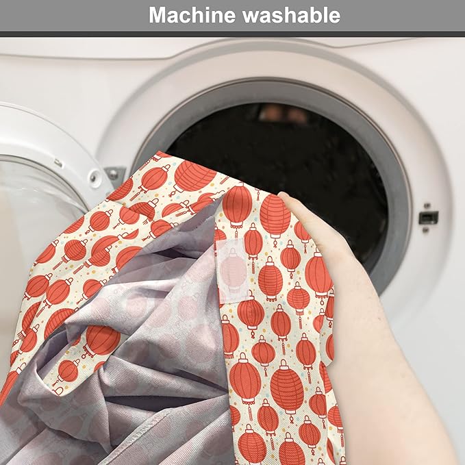 Lunarable Oriental Dog Crate Cover, Folk Lamps Cartoon Style Cheerful Pattern with Chinese Ethnicity, Easy to Use Pet Kennel Cover for Medium Large Dogs, 42 Inch, Pale Yellow and Vermilion
