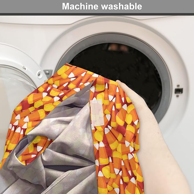 Lunarable Candy Corn Dog Crate Cover, Cartoon Style Pattern of Repetitive Nested Sweets Clutter, Easy to Use Pet Kennel Cover for Cats & Medium Dogs, 30 Inch, Marigold Vermilion