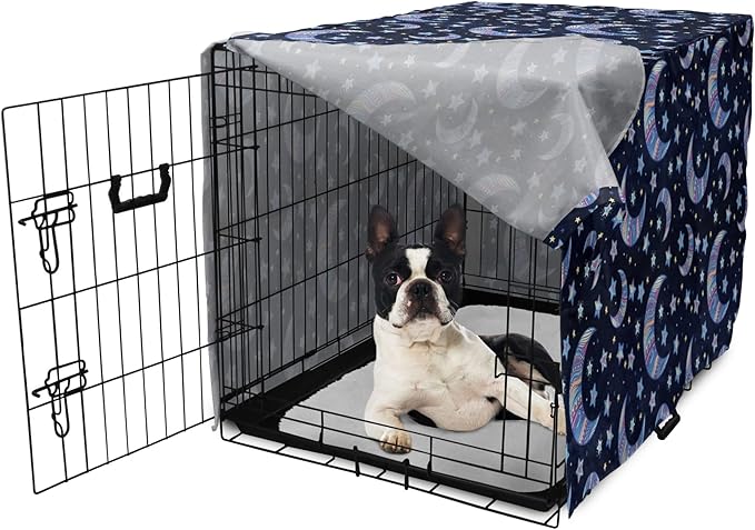 Lunarable Bohemian Stars Dog Crate Cover, Crescent Moon and Night Sky Elements Motif Curvy Background, Easy to Use Pet Kennel Cover for Small Dogs Puppies Kittens, 22 Inch, Pink Blue