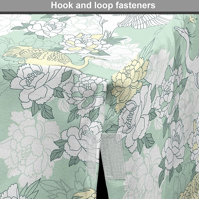 Lunarable Traditional Dog Crate Cover, Japanese Cranes Peonies Cultural Aspects Symbolic of Happy Life, Easy to Use Pet Kennel Cover for Cats & Medium Dogs, 24 Inch, Avocado Green Pale Green